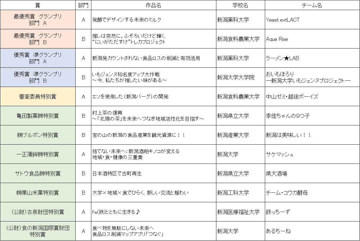 ■ 主催:(公財)食の新潟国際賞財団、「にいがた食と農の未来」学生ビジョンコンテスト実行委員会
