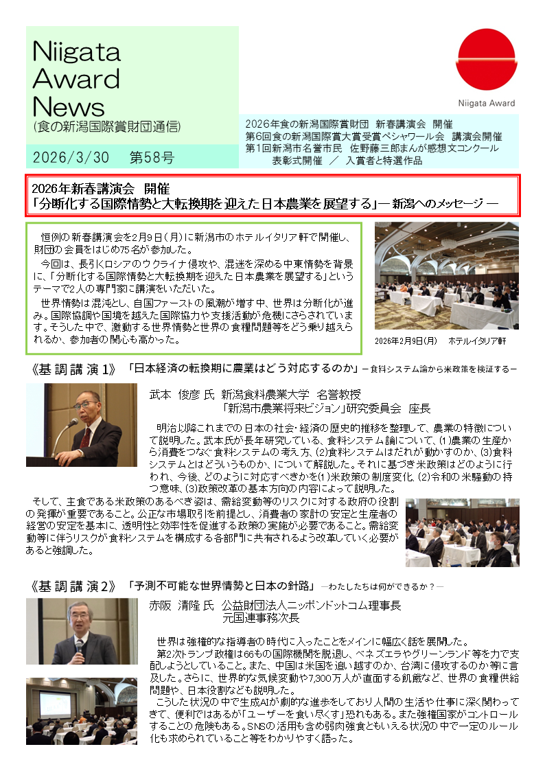 食の新潟国際賞財団通信